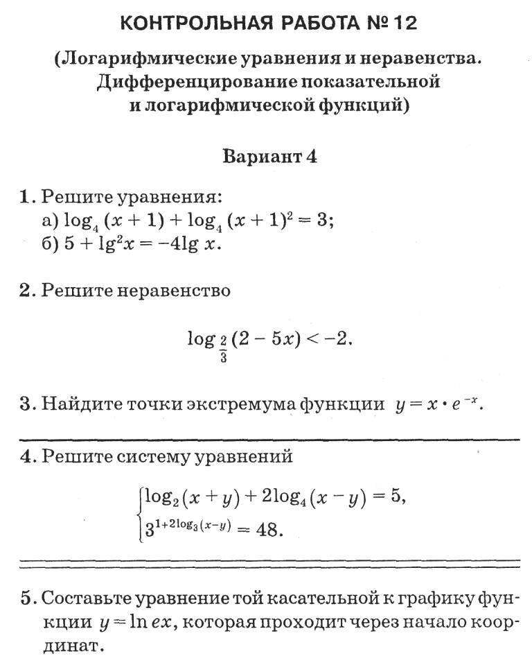 • Контрольная работа Логарифмы. Логарифмические уравнения. 5 Вариант