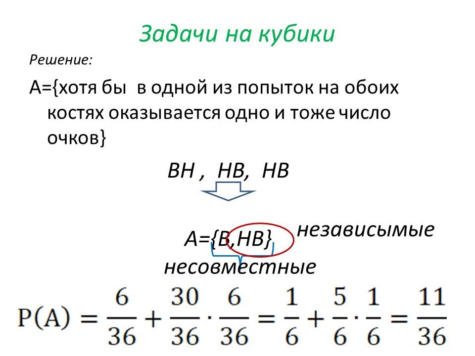 Б ) Вероятность суммы независимых событий равна сумме вероятностей этих событий;