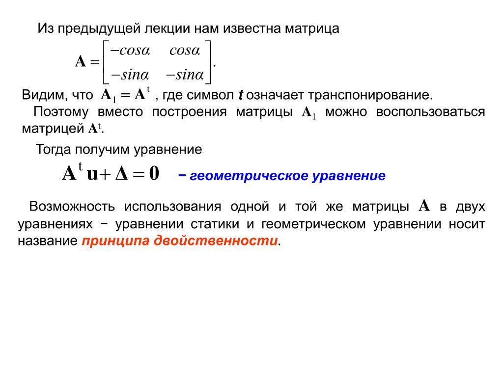 Рассмотрим транспонированную матрицу дТ. Из свойств определителя следует, что характеристическое уравнение матрицы дТ совпадает с характеристическим уравнением мат- [c.263]