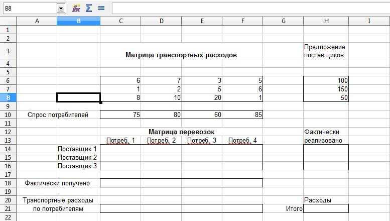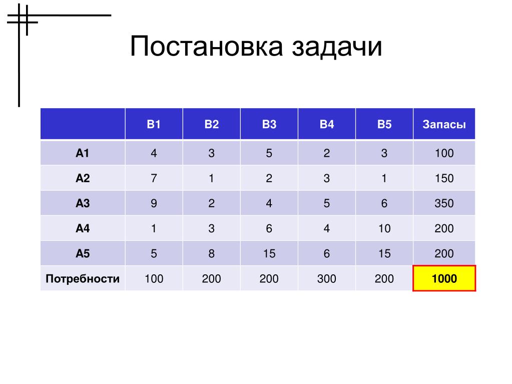 Пример решения транспортной задачи методом наименьшей стоимости