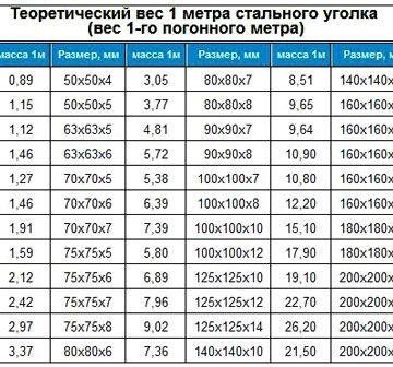 Таблицы веса погонного метра уголка по ГОСТ