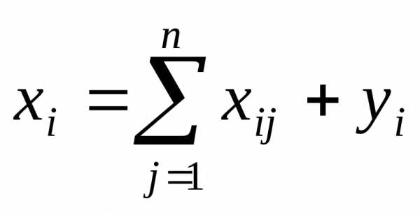 Постановка задачи. Пусть имеется n отраслей промышленности, каждая из которых производит продукцию, которая идет как для внутреннего потребления данной отраслью и другими отраслями, так и для конечного личного или общественного потребления. Обозначим хi – общий (валовый) объем продукции i-отрасли, хij – объем продукции i-отрасли, потребляемой j-отраслью, yi – объем конечного продукта i-отрасли. Имеем соотношение баланса: