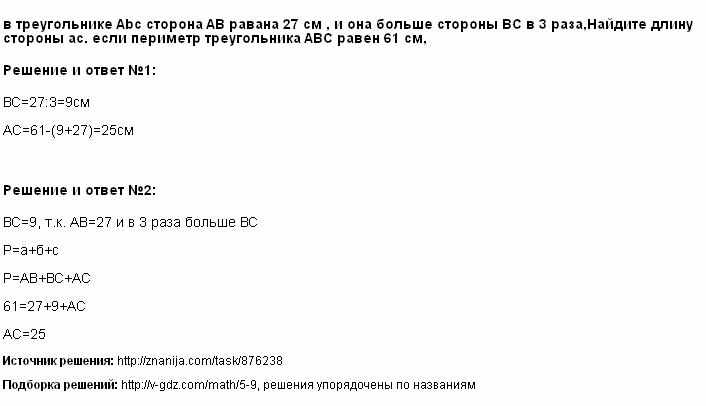 В треугольнике АВС сторона АС в 3 раза больше стороны АВ … -reshimne.ru