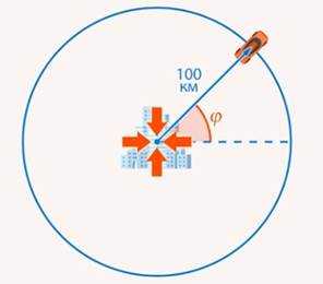 Пусть нам известно, что мы отъехали от города на км. В таком случае мы не можем точно определить свое положение, но мы знаем, что находимся на окружности с центром в городе и радиусом км (Рис. 8).