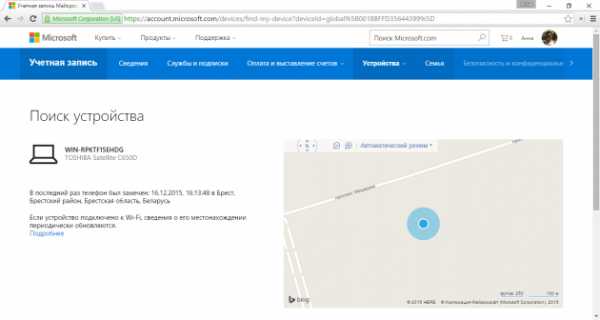 Здесь же будет указана ссылка, по которой вы cможете отследить местоположение своего устройства. Перейдите по адресу, чтобы ознакомиться со списком всех гаджетов, привязанных к вашему профилю Microsoft. Кликните по любому из них, чтобы увидеть точку последней регистрации.