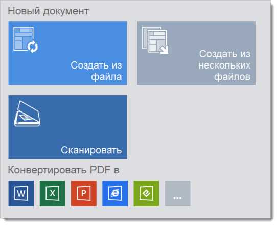 После запуска выбираете способ создания ПДФ файла, после чего откроется редактор для документа.
