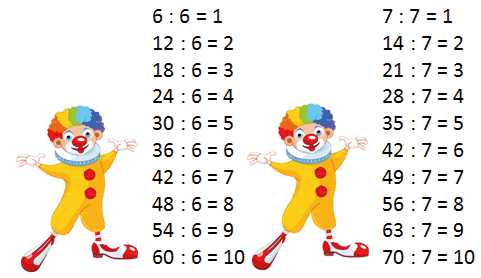 Π’Π°Π±Π»ΠΈΡΠ½ΠΎΠ΅ Π΄Π΅Π»Π΅Π½ΠΈΠ΅ Π½Π° 6 ΠΈ 7