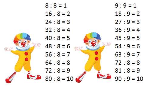 Π’Π°Π±Π»ΠΈΡΠ½ΠΎΠ΅ Π΄Π΅Π»Π΅Π½ΠΈΠ΅ Π½Π° 8 ΠΈ 9