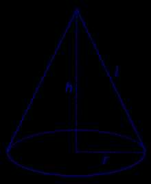 | Конус | Sосн = πr2, Sбок= πrl, Sполн = πr2 + πrl, где | |