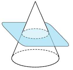 Плоскость, перпендикулярная оси конуса отсекает от него меньший конус. Оставшаяся часть называется усечённым конусом.