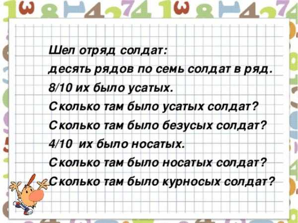 – Мы рассмотрели два типа задач, ответьте на мой вопрос: чтобы не допускать ошибок при решении как нам нужно читать условие? (внимательно)
