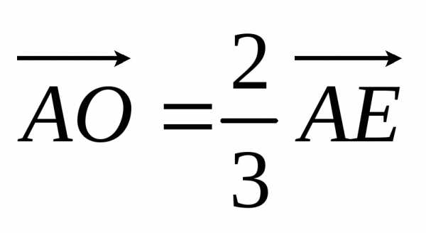 Пример 1. Доказать, что медианы треугольника пересекаются в одной точке (центре тяжести треугольника) и делятся ею в отношении 2:1, считая от вершины.
